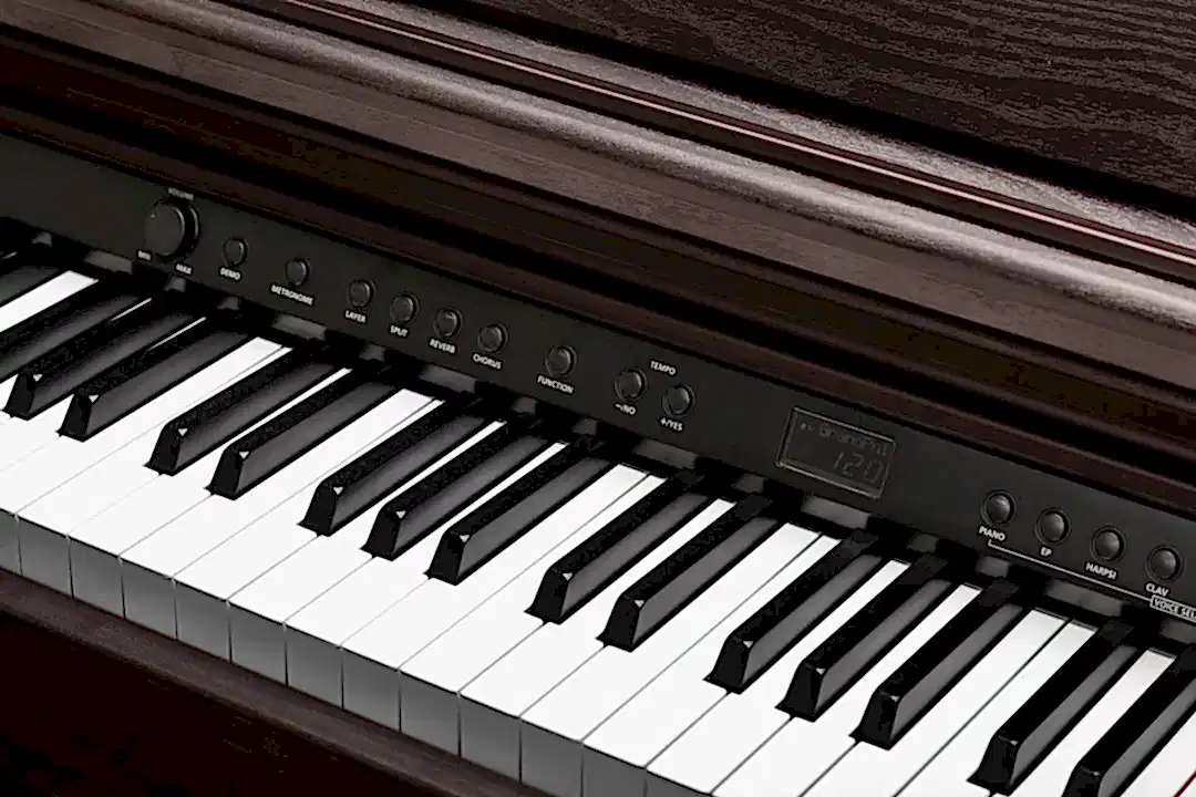 | Klavye: | 88 tuş, tam ağırlıklı, 4 kademeli, hammer-action (Çekiç aksiyon) ve ayarlanabilir tuş hassasiyetli (H1 Ivory) |